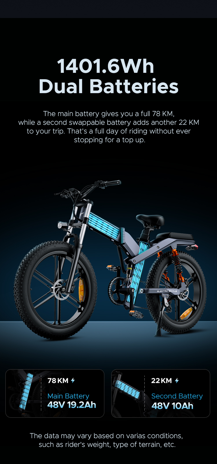| 19.2Ah Battery Version Bike Weight: 38.5KG(84.8lbs) |